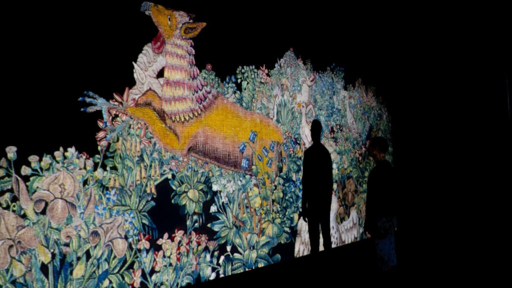 Il giardino incantato propone una grande proiezione immersiva che farà scoprire i segreti della storia e della fabbricazione dell’arazzo e approfondire i soggetti dedicati alla flora e alla fauna da un punto di vista inusuale e innovativo.