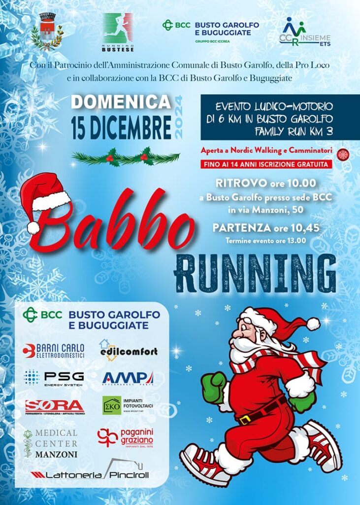Busto Garolfo si prepara ad accogliere la magia del Natale in modo unico e coinvolgente con la Babbo Running, in programma nella mattinata di domenica 15 dicembre, un evento che vuole portare un sorriso sui volti di grandi e piccini. Le strade del paese saranno invase da una marea di Babbi Natale, pronti a correre o passeggiare in un’atmosfera di festa e solidarietà. L’iniziativa, aperta a tutti, è un appuntamento imperdibile per chi desidera vivere il periodo natalizio con un pizzico di spensieratezza e tanta energia positiva.