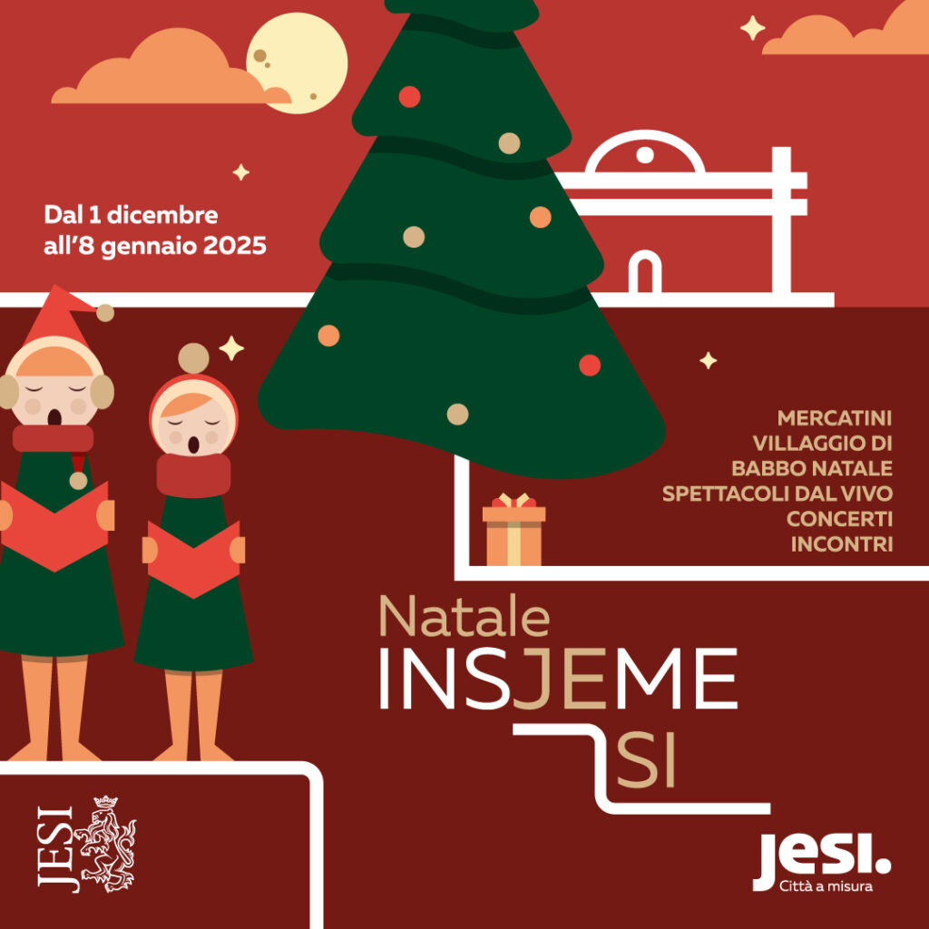 Quest’anno il Natale a Jesi è un invito a vivere la magia delle feste insieme. Dal 1° dicembre all’8 gennaio 2025, la città si trasforma in un luogo di incontri, emozioni e divertimento: mercatini, Villaggio di Babbo Natale, spettacoli dal vivo e concerti. Jesi è pronta ad accogliere grandi e piccini per condividere momenti speciali e celebrare insieme l’atmosfera natalizia. Perché il Natale è più bello quando lo viviamo insieme.