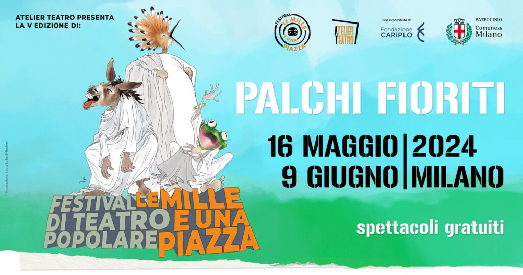 Il teatro popolare ritorna a Milano con “Palchi Fioriti”, la sessione di primavera del Festival “Le mille e una piazza 2024” di Atelier Teatro, giunto alla sua quinta edizione. Tante novità per il Festival che riporta i classici greci e latini nei parchi e nei giardini urbani, con spettacoli gratuiti adatti a un pubblico di tutte le età, in scena dal 16 maggio al 9 giugno 2024. Il Festival conferma l’abituale attenzione alle periferie e ai territori caratterizzati da criticità sociali come i quartieri ERP e propone alcune incursioni nel centro storico, nel magico contesto dei Giardini Indro Montanelli.