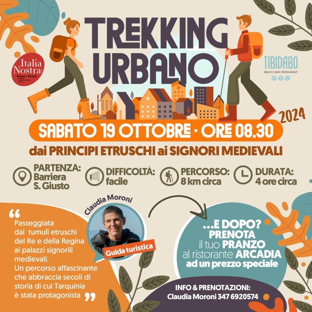 “Dai principi etruschi ai signori medievali”, a passo lento alla scoperta di sentieri e luoghi della collina di Tarquinia, per un viaggio nella storia millenaria della città, dalle necropoli etrusche ai palazzi del potere di Corneto. È l’iniziativa di trekking urbano che propone Italia Nostra Sezione Etruria per sabato 19 ottobre, in collaborazione con la guida turistica Claudia Moroni. Una camminata di circa 8 chilometri, facile e adatta a tutti, dalla durata di circa 4 ore, per conoscere angoli poco distanti dal centro abitato ma suggestivi e ricchissimi di storia. “Un percorso affascinante che abbraccia secoli di storia – sottolinea la guida turistica Claudia Moroni. Avremo l’occasione di ammirare l’area archeologica della Doganaccia con i tumuli etruschi “del Re” e “della Regina”, che si trova a poca distanza dalla necropoli dei Monterozzi, e poi, di ritorno, i palazzi e i monumenti medievali del centro storico: dalla chiesa di Santa Maria in Castello al torrione detto di “Matilde di Canossa”, al quartiere di San Martino”. Punto di ritrovo, alle 8,30, alla Barriera San Giusto. Al termine del trekking urbano, per concludere al meglio la domenica mattina, ci sarà la possibilità di pranzare, su prenotazione, al ristorante Arcadia. Per la passeggiata è consigliato indossare abiti e scarpe comodi e portarsi dell’acqua. Per informazioni e prenotazioni è possibile chiamare il 347 6920574. “Dai principi etruschi ai signori medievali” è un’iniziativa in collaborazione con lo stabilimento Tibidabo Beach.