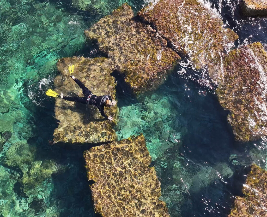Francesco Diluca durante un sopralluogo per l’installazione della scultura subacquea “Reef – Kura Halos”