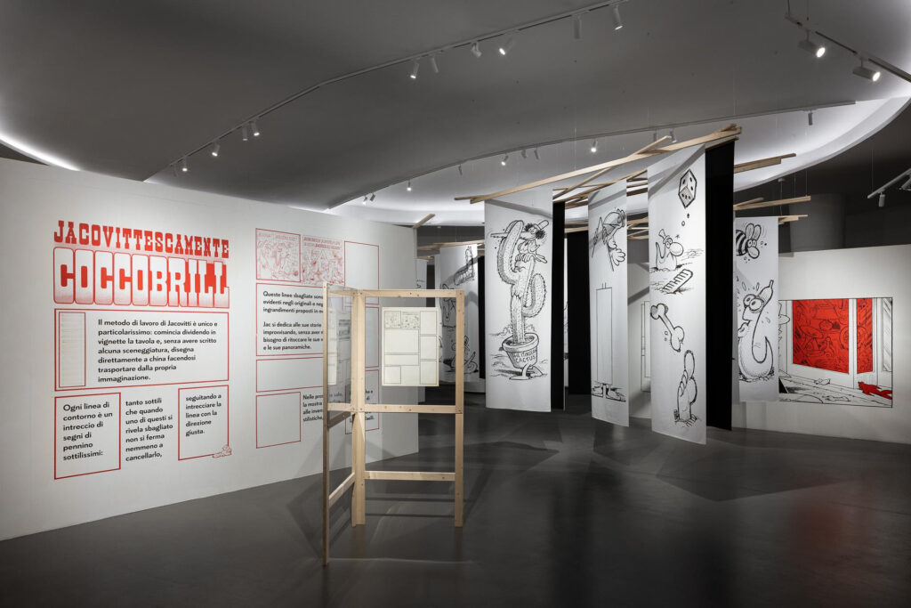 La mostra al MACTE è parte del progetto JACOVITTISSIMEVOLMENTE realizzato in collaborazione con il MAXXI Museo nazionale delle arti del XXI secolo che dal 25 ottobre 2023 al 18 febbraio 2024 ospita L’incontenibile arte dell’umorismo, una mostra a cura di Dino Aloi e Silvia Jacovitti con Giulia Ferracci, che presenta i cento personaggi creati nel corso della sua lunga e vivace carriera.