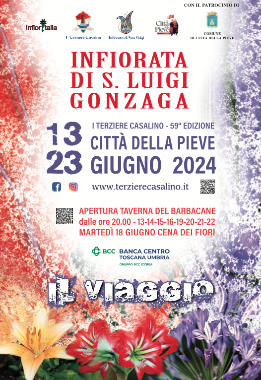 È il viaggio il tema dominante dell’Infiorata di Città della Pieve, organizzata dai contradaioli del Terziere Casalino in omaggio a tutti i visitatori. Da ben 59 anni l’infiorata è il momento più suggestivo della città umbra. Sabato 22 e domenica 23 giugno, un suggestivo tappeto floreale di oltre 900 metri quadrati che partirà da Porta Sant’Agostino, percorrerà via Vannucci e terminerà ai piedi della Cattedrale accoglierà tutti.