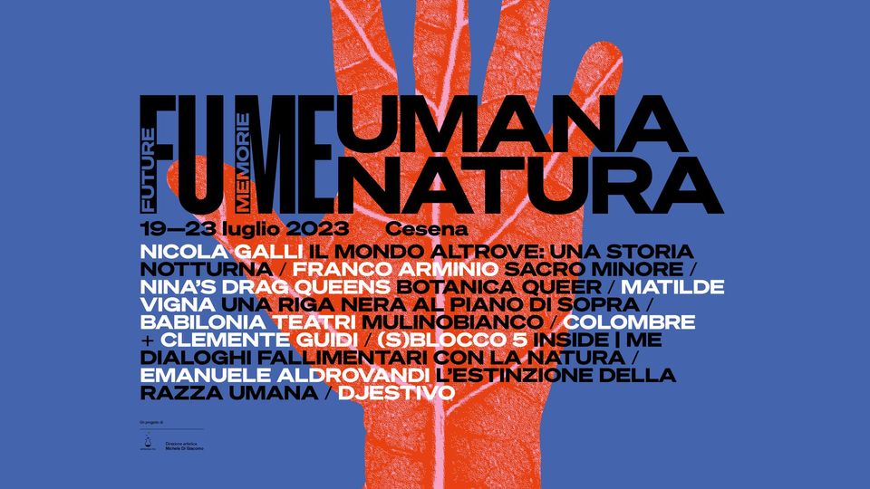 Un programma multidisciplinare e contemporaneo, con un focus sulla diffusione e la produzione di drammaturgia, che ospiterà compagnie, artisti e artiste del teatro, della danza, della musica e della performance, unito assieme da un tema ogni edizione differente, per offrire spunti di riflessione sul presente e immaginare nuovi futuri. Titolo di FU ME 2023 è UMANA NATURA. Per indagare il rapporto tra ESSERI UMANI e NATURA