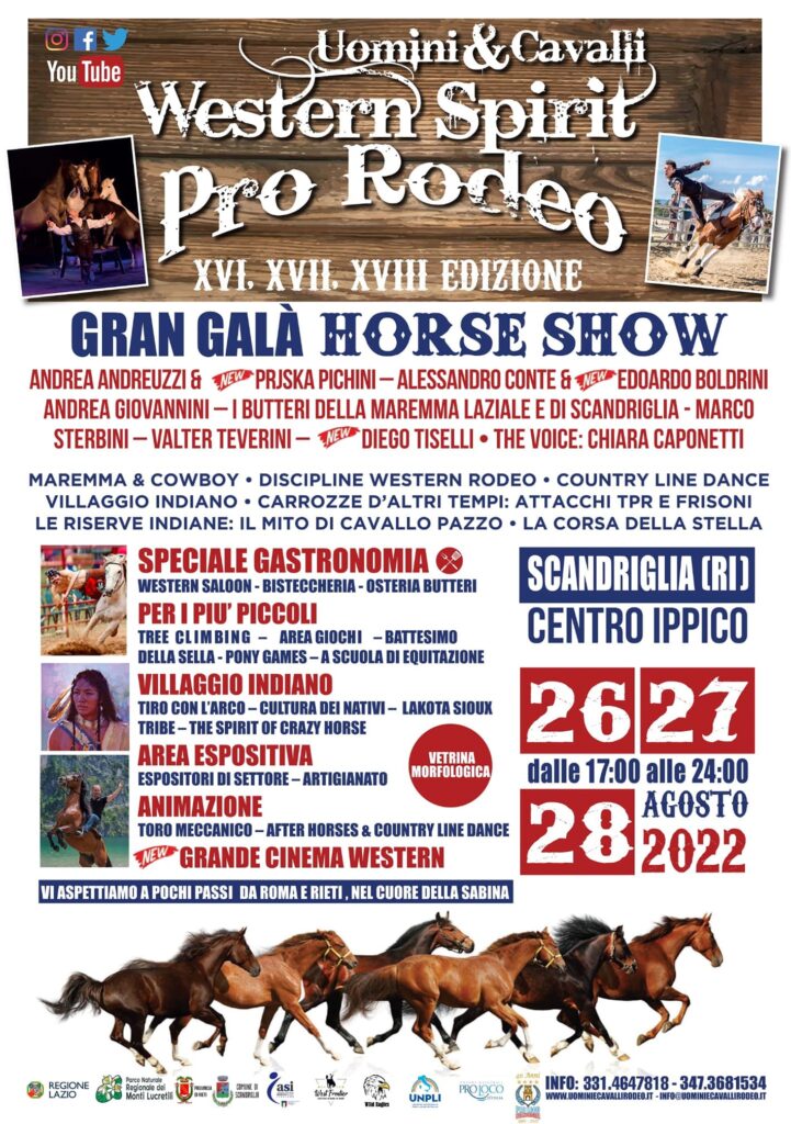 Venerdi 25, Sabato 26 e Domenica 27 Agosto XIX “Uomini & Cavalli – Western Spirit Pro Rodeo”. La manifestazione, nata nell’estate del 2005, quest’anno festeggerà la 19^ edizione. Dedicata al mondo equestre, durante l’evento si mettono a confronto le tradizione dei butteri della Maremma laziale, i cowboy nostrani, e le tradizioni di oltreoceano. Inoltre, gli spettacoli equestri sono sempre di altissimo livello. Quest’anno saranno presenti i formidabili artisti della famiglia Giona, vincitori del clown d’argento a Montecarlo, premio ricevuto direttamente dalla principessa Stephanie di Monaco. Eseguiranno un’anticipazione degli spettacoli che saranno a Fiera Cavalli a Verona (9-12 novembre 2023).
