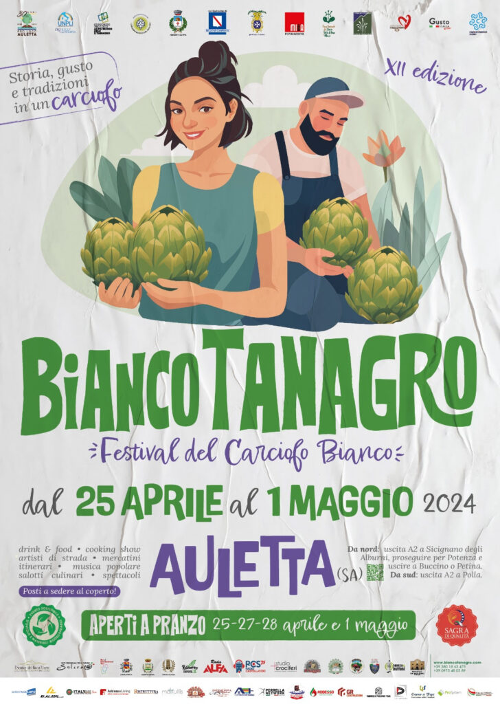 Giovedì 25 aprile, alle ore 10, verrà inaugurata la XII edizione di Bianco Tanagro. Il festival del carciofo bianco della Valle del Tanagro è un contenitore culturale e gastronomico che si stringe attorno ad una produzione locale identitaria, la quale sta dando una forte spinta di rilancio all’agricoltura locale.