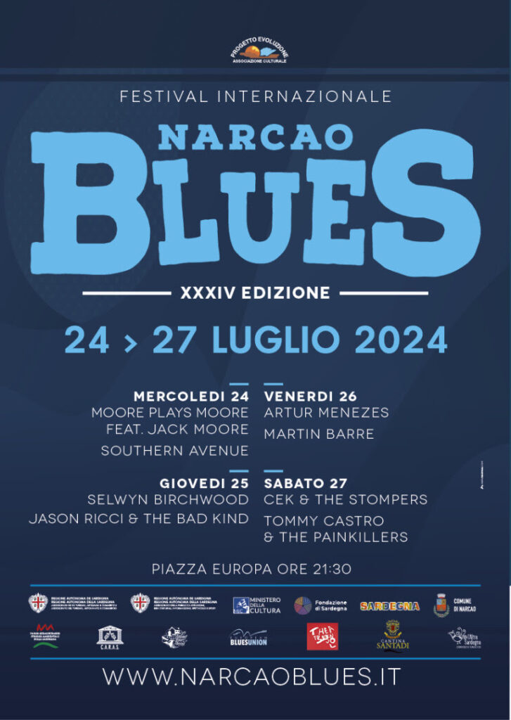 Tutto pronto per la trentaquattresima edizione di Narcao Blues: da mercoledì (24 luglio) a sabato 27 ritorna il più longevo festival blues in Sardegna, e tra i più apprezzati nel panorama nazionale. Un appuntamento da mettere in agenda per gli appassionati del genere, che già nella sua intestazione rimarca l’inscindibile legame con il paese in cui è nato nel 1989 e dove ha sede l’associazione culturale Progetto Evoluzione che lo organizza e promuove: Narcao, nel cuore del Sulcis, a poca distanza da Carbonia e a una sessantina di chilometri da Cagliari.