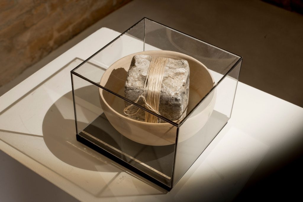 Rosanna Bianchi Piccoli è un’artista nota per la sua ricerca sulla ceramica dalle origini al contemporaneo. Le cinque sculture esposte, realizzate tra la fine degli anni Novanta e l’inizio del Duemila, raccontano il rapporto dell’artista milanese con la terra e l’argilla, intese come “scrigni” che contengono la materia e la sacralità del tempo. Le opere, tra cui Se noi siamo la terra (2001), sono legate con fili colorati, evocativi del suo vissuto.