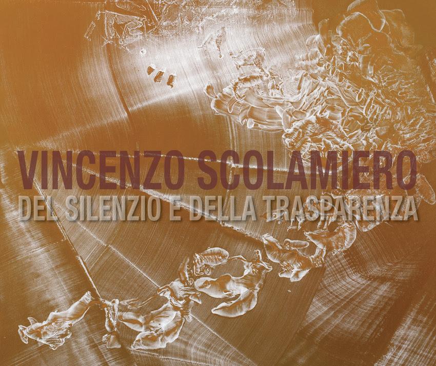 Protagonisti della personale di Vincenzo Scolamiero, che già dal titolo Del silenzio e della trasparenza argomenta in bella forma arcaica lo spirito che la anima, sono alcuni recenti cicli di grandi tele e quaderni d’artista. Lavori eseguiti con pigmenti vari, inchiostri, chine e scintillanti polveri metalliche, a comporre forme solide e piane, lastre di colore e pieghe terrestri, tagliate dalla luce e scompaginate da un vento ancestrale.