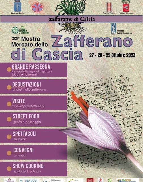 “L’oro rosso” di questo tratto della provincia di Perugia in mostra per 4 giorni, tra degustazioni, visite guidate nelle aziende del territorio, di stand ed espositori gastronomici: dal 27 al 29 ottobre il centro storico della splendida cittadina si veste a festa per celebrare lo zafferano purissimo di Cascia.