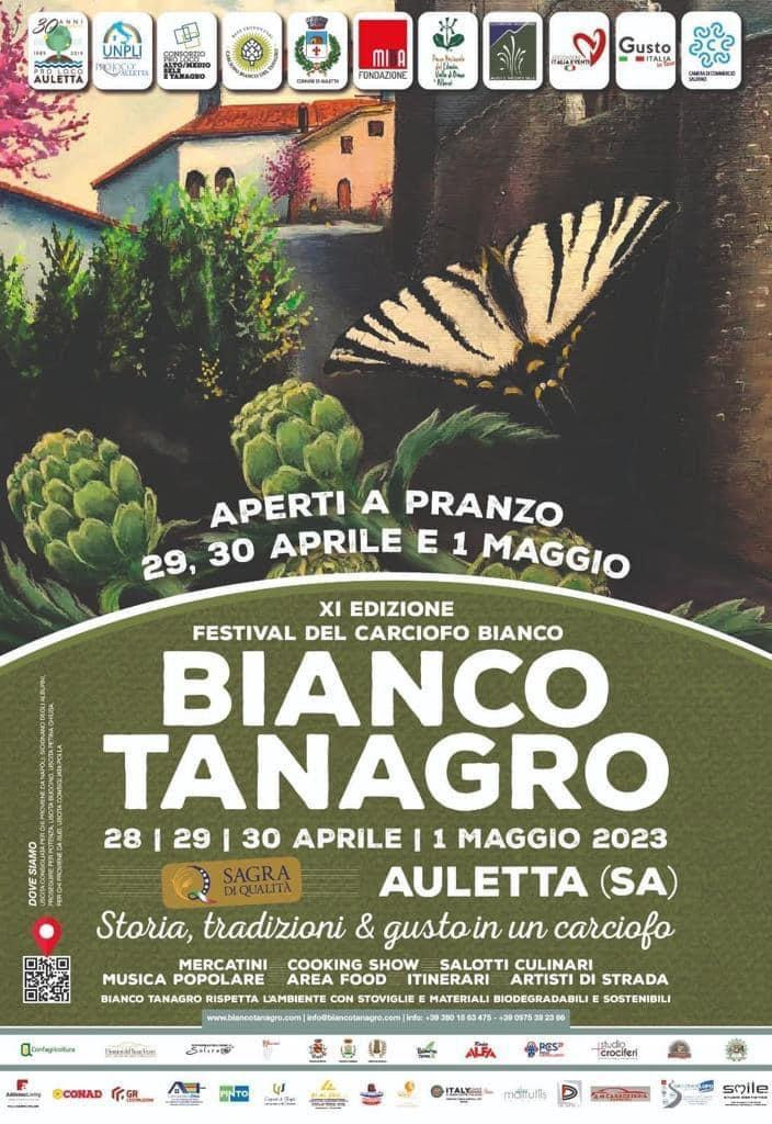 Da venerdì 28 aprile a lunedì primo maggio il borgo di Auletta proporrà un centro storico in continua festa, dalle 10 del mattino a tarda sera: menù dedicati al carciofo bianco a pranzo e a cena, mercatini di tipici e artigianali curati da Gusto Italia, il Bianco Festival con tanti artisti di strada itineranti, gruppi folk e musicali, presentazioni di libri e numerose attività culturali collaterali, tra cui l’appuntamento con la sfilata di moda al Castello marchesale. Non mancherà nemmeno il Teatro nazionale dei burattini di Mauro Apicella.