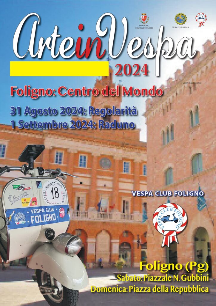 Si svolgerà a Foligno l’iniziativa “Arte inVespa 2024”, prevista per le giornate del 31 agosto e del 1 settembre 2024, organizzata dal Vespa Club Foligno, in collaborazione con A.F.A.S. Foligno e Rotary Club Foligno. La manifestazione, patrocinata dal Comune di Foligno, si svilupperà in due distinte giornate con momenti diversi: sabato 31 agosto nel piazzale Gubbini, dalle 8 alle 18 per lo svolgimento delle operazioni di iscrizione, sosta dei veicoli e svolgimento delle prove di abilità di guida degli equipaggi partecipanti al campionato umbro di regolarità Vespa. Durante la mattina del 31 agosto i partecipanti transiteranno per le località di Maceratola, Fiamenga, Bevagna, Montefalco, Torre di Montefalco e Corvia mentre nel pomeriggio, partendo ancora da Foligno, passeranno per la zona della Paciana, Spello, Collepino, Valtopina per tornare a Foligno.