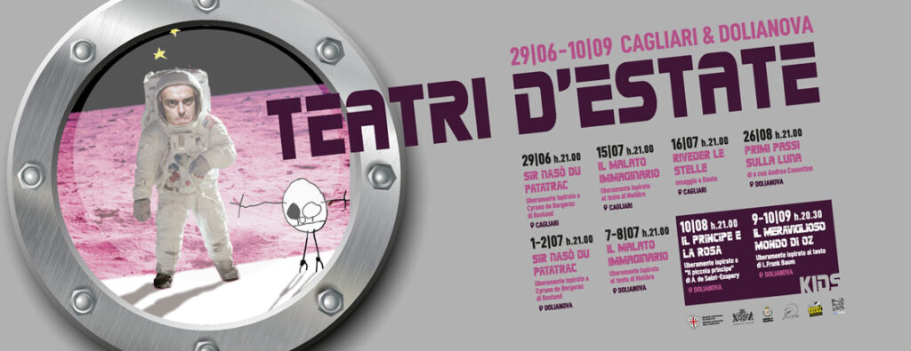 Undici appuntamenti in cartellone, vedranno sul palcoscenico gli spettacoli Primi passi sulla luna di e con Andrea Cosentino, Sir Nasò du Patatrac, liberamente ispirato al Cyrano de Bergerac di Rostand, Il malato immaginario di Molière, Il principe e la rosa di e con Nicola Michele (liberamente ispirato a “Il piccolo principe” di Antoine de Saint-Exupéry), Riveder le stelle: 700 anni con Dante, con le musiche originali di Alessandro Manunza, e Il meraviglioso Mondo di Oz.