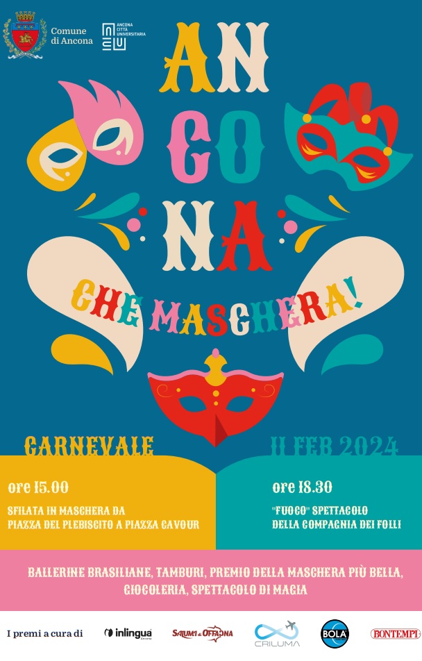Domenica 11 febbraio nelle Marche va in scena “Ancona, che Maschera!”, il nuovo Carnevale della città, una iniziativa voluta dall’Amministrazione Comunale per coinvolgere tutti i cittadini e renderli protagonisti di una grande festa in centro, soprattutto grazie alla sfilata di maschere.