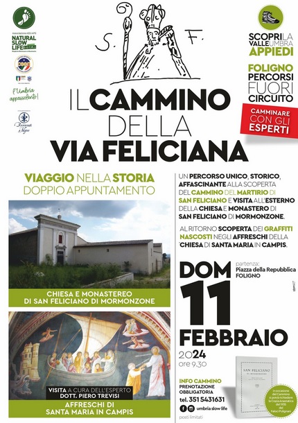 Domanica 11 febbraio in Umbria un percorso unico, storico, affascinante alla riscoperta del “Cammino del Martirio di San Feliciano” con visita all’esterno della Chiesa e Monastero di San Feliciano di Mormanzone” accompagnati da una guida esperta.
