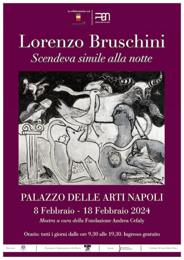 La Fondazione Andrea Cefaly è lieta di presentare presso il PAN – Palazzo delle Arti Napoli la mostra personale di Lorenzo Bruschini, intitolata Scendeva simile alla notte. La mostra presenta al pubblico una selezione di dipinti, disegni e pubblicazioni dell’artista Lorenzo Bruschini, ispirati al suo progetto d’arte Viaggio a Hierapytna, premio ArtAmari Residency sull’isola di Creta (Grecia) nel 2014.