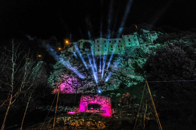 Per sette sere (il 24 dicembre alle ore 22.30 e tutti gli altri giorni alle 17.30) la Palestina tornerà a “traslocare” nel cuore della provincia di Rieti: se a Betlemme si operò il mistero della divina incarnazione di Gesù, a Greccio ebbe inizio, in forma del tutto nuova, la sua mistica rievocazione. Attraverso un accurato studio scenografico, sarà allestito un impianto che rappresenterà il borgo medioevale laziale e il suo castello nel 1200. Tutto intorno sarà predisposto a semicerchio, in modo da creare un effetto “anfiteatro” con tribune modulari con oltre 2000 posti a sedere, mentre all’esterno delle tensostrutture riscaldate saranno capaci di contenere centinaia di persone. A creare un’atmosfera unica saranno anche la particolare illuminazione, le musiche, la fedeltà delle scene e dei costumi, la bravura e la devozione degli interpreti e la bellezza del luogo, il piazzale antistante il Santuario di Greccio circondato da una natura incontaminata.