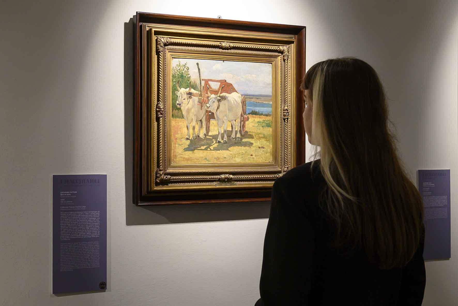 Nella seconda metà dell’Ottocento, Firenze è una delle capitali culturali più attive in Europa e diventa ben presto – prima grazie alle politiche moderate del Granduca e poi per il suo ruolo nevralgico nelle vicende unitarie – punto di riferimento per molti intellettuali provenienti da tutta Italia. Intorno ai tavoli di un caffè cittadino, il Michelangelo, si riunisce un gruppo di giovani artisti accomunati dallo spirito di ribellione verso il sistema accademico e dalla volontà di dipingere il senso del vero. Il nome “macchiaioli”, usato per la prima volta in senso dispregiativo dalla critica, viene successivamente adottato dal gruppo stesso in quanto incarna perfettamente la filosofia delle loro opere. Un’attenzione particolare sarà data in mostra al rapporto con la Scuola di Barbizon, come riferimento fondamentale nella nascita della pittura di paesaggio en plein air.