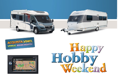 Durante Happy Hobby Week End si può partecipare al concorso che mette in palio il rimborso del prezzo pagato per l’acquisto della caravan o, per chi acquista un autocaravan o un van Hobby, l’omaggio del sistema di navigazione BLAUPUNKT con retrocamera del valore di 1600 euro.
