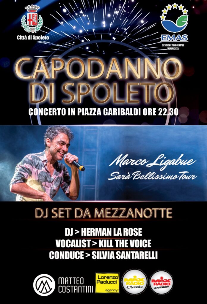 Capodanno in musica a Spoleto. La notte di sabato 31 dicembre si torna in piazza per salutare il 2022 con Marco Ligabue in concerto e a seguire dj set.