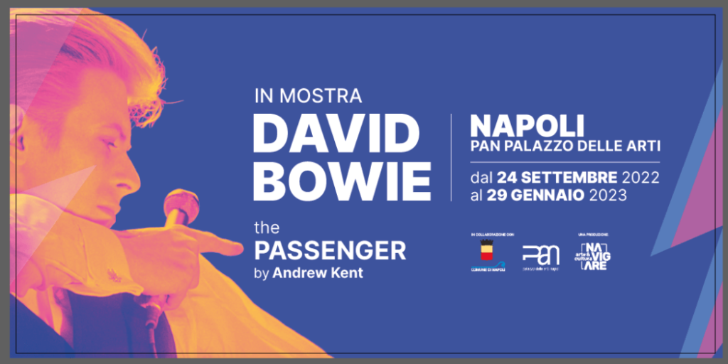 Al Palazzo delle Arti Napoli va in scena la mostra David Bowie: the passenger. By Andrew Kent che resterà aperta al pubblico sino a fine gennaio 2023. L’esposizione, realizzata dal produttore Salvatore Lacagnina, della società Navigare, con il patrocinio del Comune di Napoli, presenta la vita pubblica e privata dell’artista inglese attraverso fotografie e testimonianze di Andrew Kent che lo accompagnò nel tour europeo negli anni ’70.
