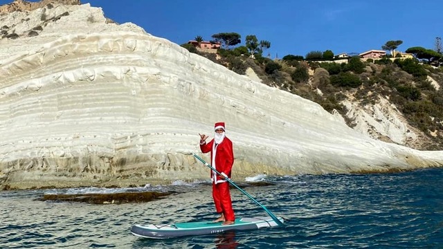 Come da tradizione di Capodanno, alla Scala dei Turchi il primo bagno dell’anno assieme a Babbo Natale.