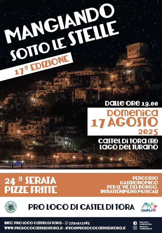 Poi, quando scende la sera, inizia la vera festa: la 17ª edizione di “Mangiando sotto le stelle” è pronta a stuzzicare palati e animi romantici. Dalle 19, un percorso gastronomico degno di una maratona golosa: pizze fritte dolci e salate (una vera istituzione), trippa alla romana, fagioli con le cotiche, arrosticini, salsicce alla brace, e per chiudere in bellezza dolci, buon vino e fresca birra… che aiuta a guardare le stelle con occhi ancora più sognanti.