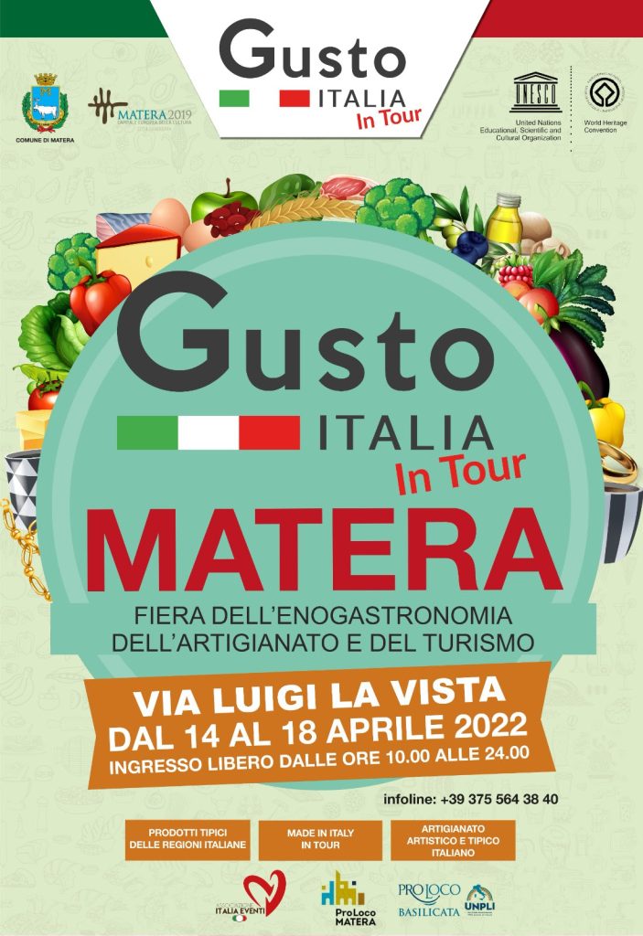Scoprire la varietà dei sapori e dei saperi italiani, unitamente alle città più belle dello Stivale. È questo l’obiettivo di Gusto Italia in tour, la fiera dell’enogastronomia, dell’artigianato e del turismo che si svolgerà a Matera dal 14 al 18 aprile.