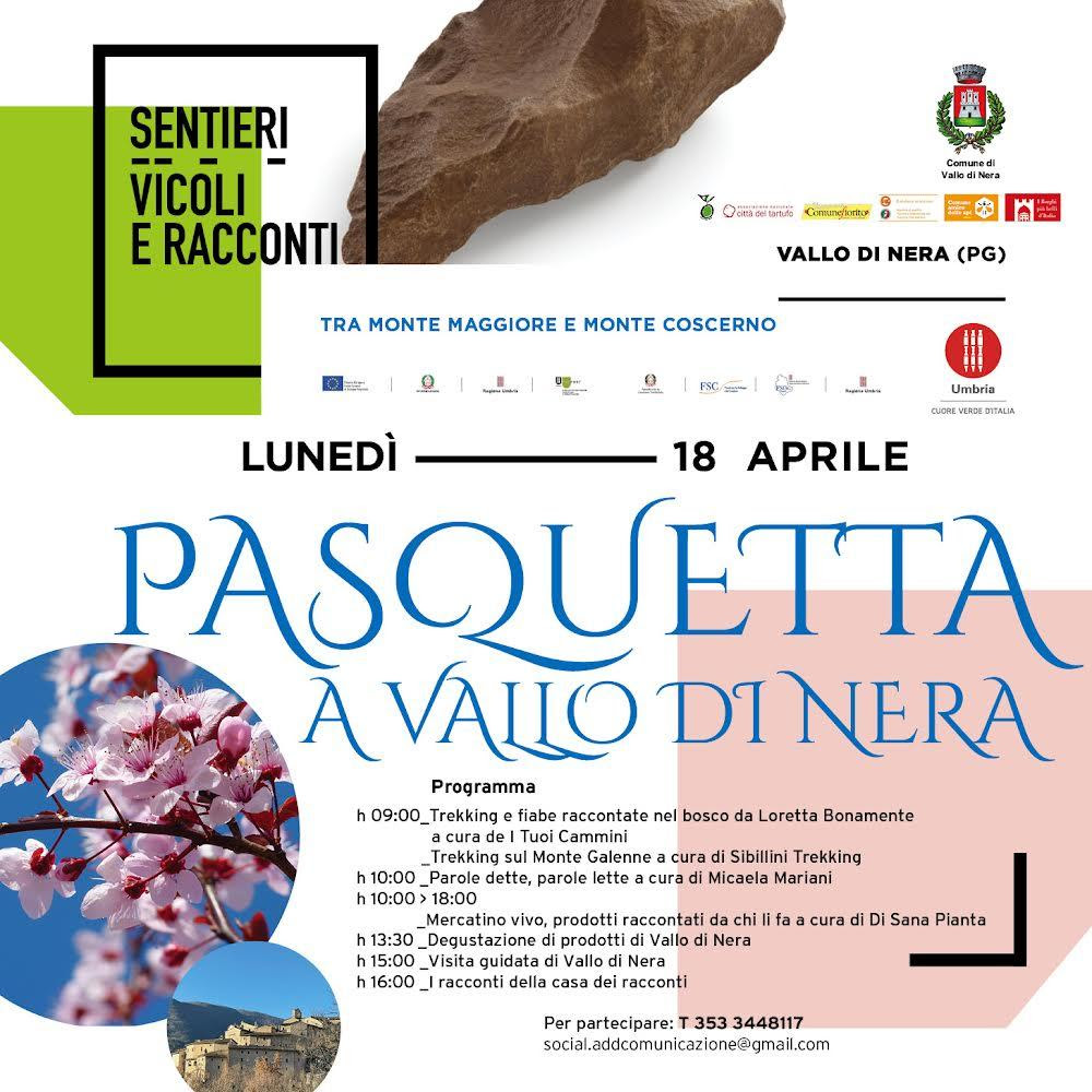 A Vallo di Nera (Pg), paese – monumento, terra di racconti, che con il suo castello domina la Valnerina, si festeggerà la Pasquetta, lunedì 18 aprile 2022, con una serie di iniziative en plein air, per godere della natura, dei cibi prelibati, delle perle artistiche custodite tra le mura del castello e dei racconti della tradizione.