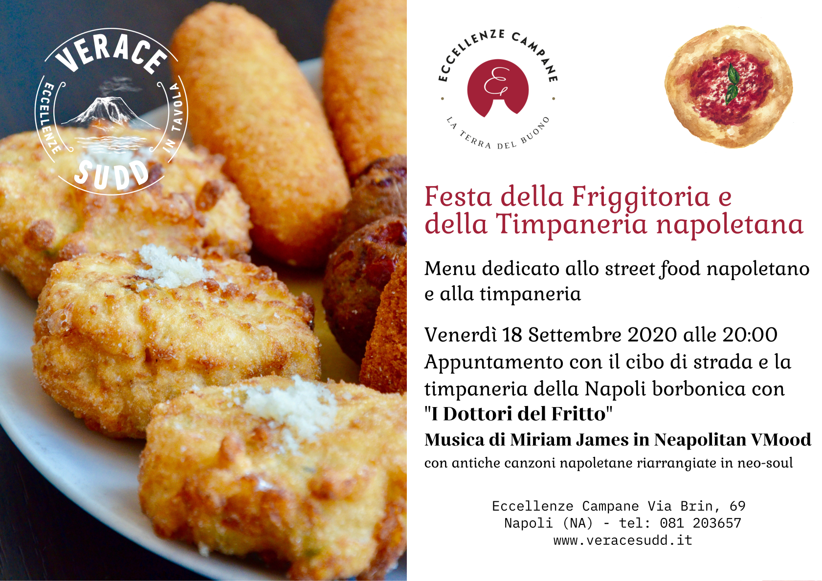 Dopo il recente successo della Festa della Mozzarella di Bufala, Eccellenze Campane e Verace Sudd presentano la Festa della friggitoria e della timpaneria napoletana, che si terrà venerdì 18 settembre presso il locale di via Brin a Napoli.