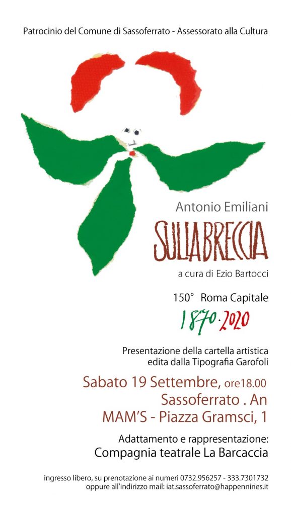 In occasione della ricorrenza del 150esimo anniversario della Breccia di Porta Pia, ovvero del moto Risorgimentale che sancì la fine dello Stato Pontificio, quale entità storico-politica, e la conseguente annessione di Roma al Regno d’Italia, la Tipografia Garofoli ha realizzato l’edizione artistica “𝐒𝐮𝐥𝐥𝐚 𝐁𝐫𝐞𝐜𝐜𝐢𝐚”, curata da Ezio Bartocci, con un testo di Antonio Emiliani che partecipò allo storico scontro ed alcune immagini grafiche e fotografiche.
