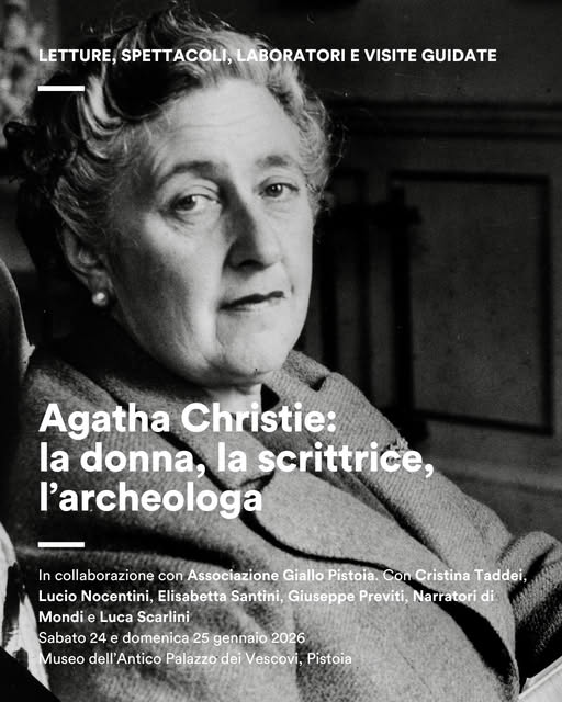 In occasione del cinquantesimo anniversario della morte di Agatha Christie (12 gennaio 1976), Fondazione Pistoia Musei dedica un weekend speciale alla straordinaria figura della scrittrice britannica: non solo la “regina del giallo”, ma anche una donna curiosa, viaggiatrice, osservatrice del mondo e appassionata di archeologia.
