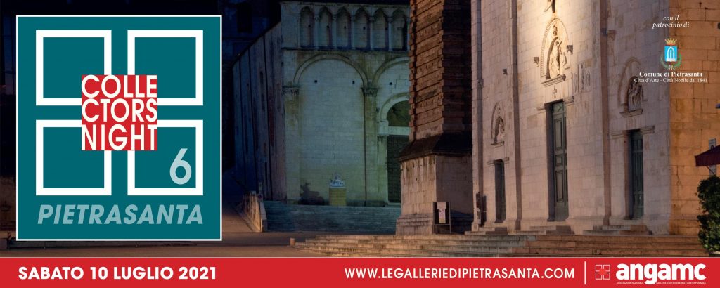 Realizzata con il patrocinio del Comune di Pietrasanta, la sesta edizione della “Collectors Night” si configura come un percorso nel centro storico di Pietrasanta, attraverso le opere d’arte selezionate da Accesso Galleria, Barbara Paci Galleria d’Arte, Futura Art Gallery, Galleria Deodato Arte, Galleria Giovanni Bonelli & LIS10 Gallery, Galleria Poggiali, Galleria Susanna Orlando, Marcorossi Arte Contemporanea, Paola Raffo Arte Contemporanea.