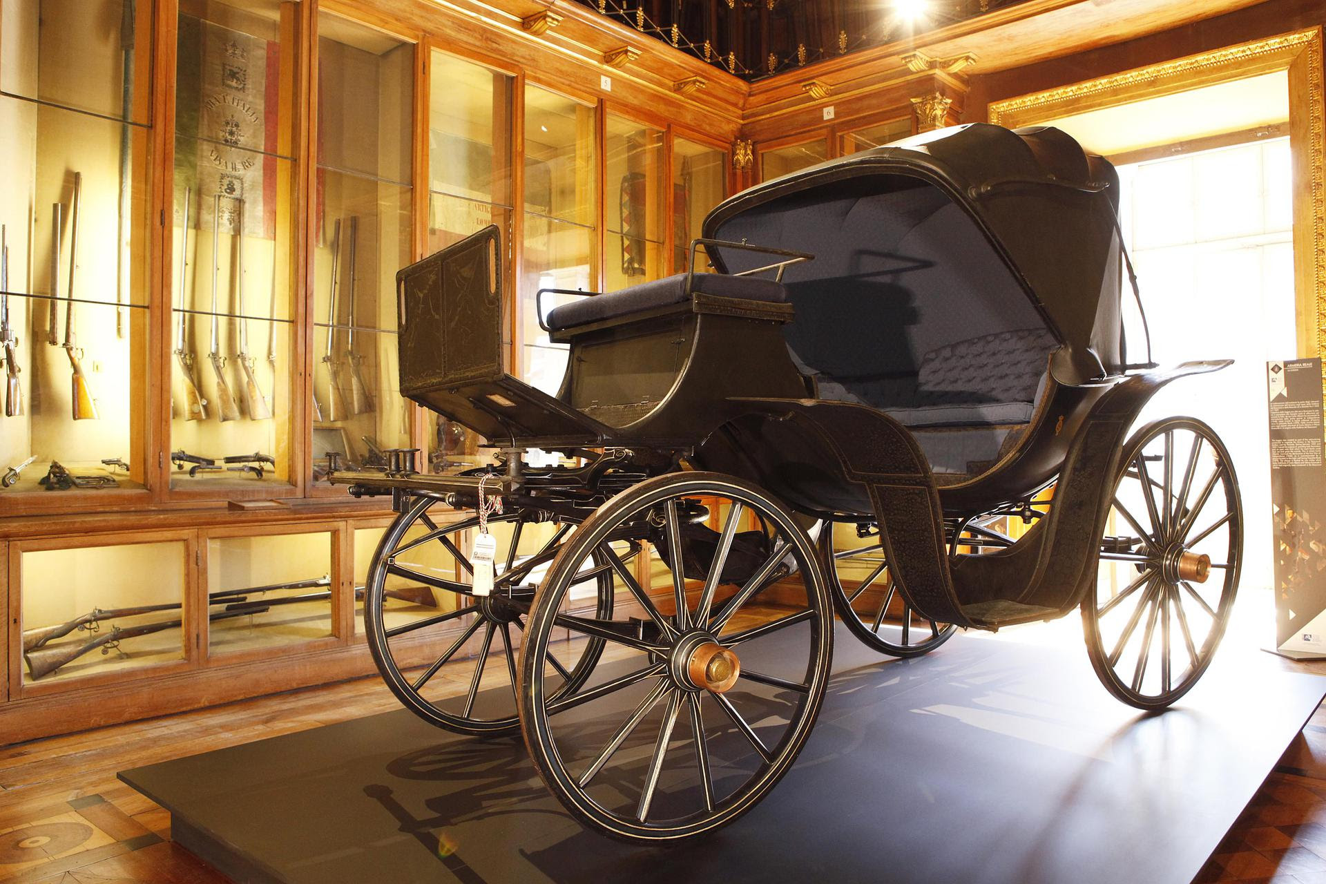 L’arrivo a Torino della carrozza rappresenta un importante tassello del percorso dei Musei Reali, in una delle sezioni che maggiormente colpiscono l’immaginazione dei visitatori. Il mezzo sarà infatti collocato a pochi passi dalla loggia dalla quale Carlo Alberto annunciò, il 4 marzo 1848, la promulgazione dello Statuto. Appartenente alle Collezioni Presidenziali del Quirinale, la carrozza denominata Mylord, ricordata negli inventari con la definizione antica di ‘Polonese’ o ‘Polacca’, era uno dei mezzi di trasporto preferiti da Vittorio Emanuele II per le sue uscite private a Roma. È un modello aperto e basso, privo di portiere, a quattro ruote e a due sedili con cassetta di guida per il cocchiere, realizzata dalla ditta romana dei fratelli Casalini. Oggi la carrozza fa parte del nucleo più antico e prezioso della Collezione Presidenziale. Nell’inventario del 1882 figura una nota manoscritta a fianco che recita: “Le Polonesi erano le carrozze di cui abitualmente si serviva il Gran Re Vittorio Emanuele II [….]”. Il brano prosegue sottolineando che “questa seconda fu l’ultima adoperata in Roma avanti la sua morte” a ricordare, quindi, come questo mezzo fosse particolarmente amato dal re.