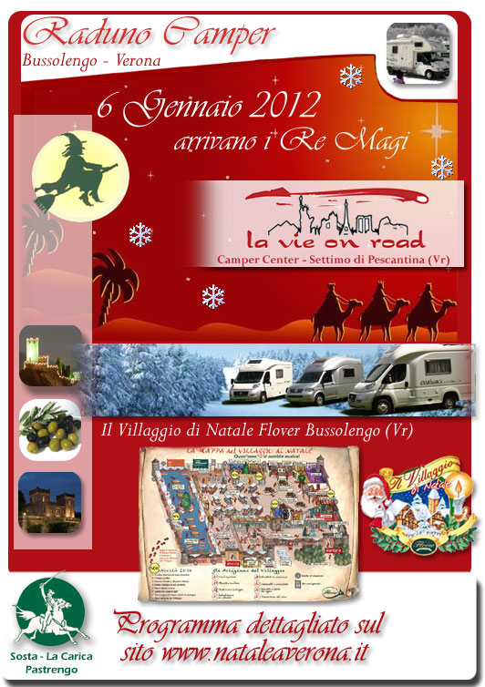 – Ore 18,30: Hotel Ristorante “La Carica”: Falò della Befana (tradizione tipica veronese “Brùsa la Vecia”) con vin Broulè per tutti. Suggestiva fiaccolata al Forte Austroungarico di Piovezzano con accensione del megafalò.  – Possibilità di pernottamento.