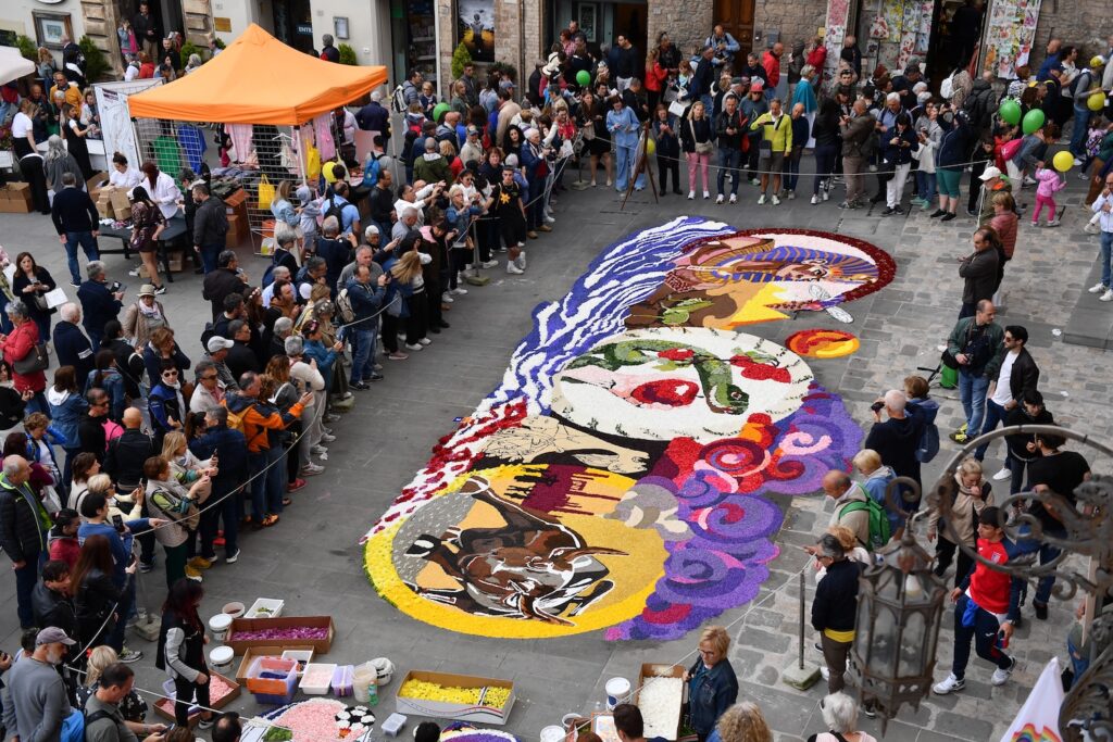 Nell’anno del Giubileo della Speranza 2025, anche Spello si prepara ad accogliere i numerosi visitatori che arriveranno in Umbria, in particolare nel weekend del 21 e 22 giugno, quando le artistiche Infiorate del Corpus Domini torneranno a colorare le vie e le piazze del centro storico. Queste straordinarie opere floreali, celebri in tutto il mondo per le dimensioni (con quadri che variano dai 25 ai 70 mq e tappeti di almeno 12 mq) e per la qualità artistica (realizzate esclusivamente con elementi vegetali, senza l’uso di colla o coloranti artificiali), daranno vita a un percorso suggestivo di quasi due chilometri. Dalla Porta Consolare fino al belvedere, Spello, uno dei borghi più belli dell’Umbria e d’Italia, si trasformerà in un’autentica opera d’arte a cielo aperto.