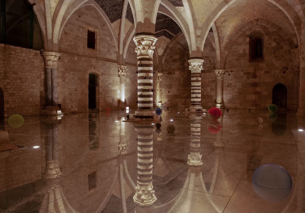 Ottocento metri quadrati ricoperti di specchi calpestabili, una nuova, temporaneapavimentazione per la Sala Ipostila del Castello Maniace, dove si moltiplicheranno le immagini delle volte a crociera, delle colonne in pietra luminosa, della sobria architettura normanna.