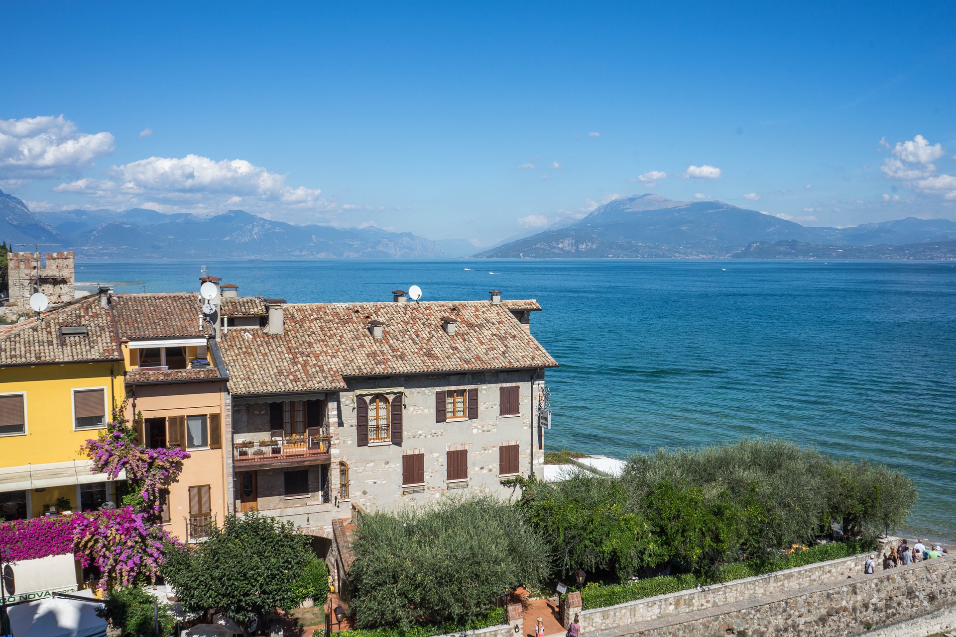 Clima mite, acque limpide, rive che si specchiano nel lago fondendo il verde delle colline con i colori caldi dei pittoreschi paesi che lo animano. Il monte Baldo, poi, ricco di valori naturalistici e ambientali e una grande catena montuosa per chi dalla pianura sale verso il Brennero, è stato riconosciuto, fin dal Quattrocento, come “Hortus Europae” (Orto botanico d’Europa). A questo territorio ha dedicato versi anche Catullo, poeta dell’amore sensuale, ma ne hanno scritto anche Foscolo e Carducci. Grazie a queste peculiarità il lago ha attratto turisti, e li attrae tuttora, da tutto il mondo. Con una superficie di 370 Kmq. il lago di Garda è il più vasto tra quelli italiani. La parte meridionale si apre come un mare mentre la costa settentrionale, incassata tra monti, è simile a un fiordo. Anticamente conosciuto come Benaco, è un lago dalle numerose sfaccettature. Lungo l’intero periplo la strada costeggia quasi sempre le rive presentando spesso scorci molto suggestivi e attraenti paesini ricchi di storia che conservano testimonianze comprese tra l’età romana e il medioevo. Le colline moreniche che racchiudono a sud il lago sono infatti punteggiate di piccoli borghi attraversati da strade panoramiche e fiancheggiati da vigneti.