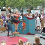 La città è piena di gente, tra turisti, abitanti del luogo ed artisti di strada venuti da Francia, Inghilterra, Irlanda e Belgio per un festival dedicato interamente a loro. Gli spettacoli si susseguono, uno dietro l’altro in zone diverse della città. Mentre uno spettacolo sta per finire, accanto una troupe monta il palcoscenico di quello che seguirà oppure, se non ce n’è bisogno, il protagonista si riscalda.