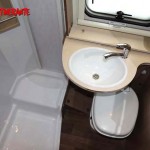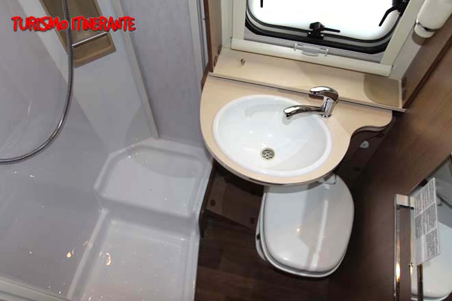La toilette è con doccia separata e con il comodo sistema del lavabo scorrevole che permette di liberare la fruibilità del vano wc.