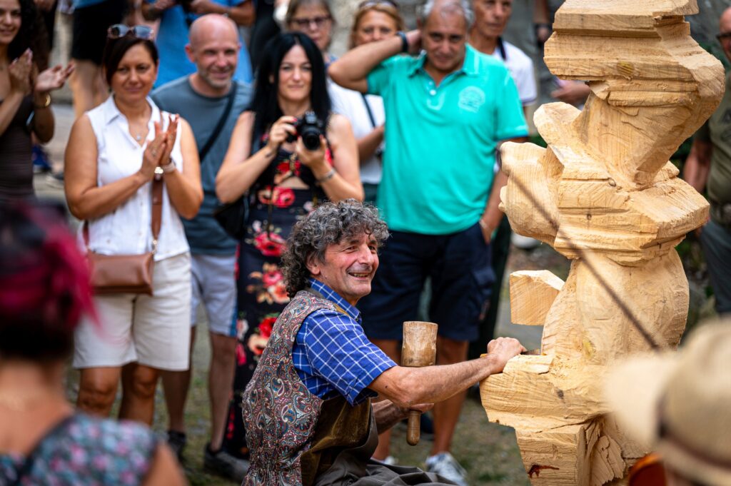Tutta la giornata Sutrio è animato dalle bancarelle di un’affascinate Mostra-mercato di artigianato del legno e da laboratori, chioschi enogastronomici, esibizione di scultura e intaglio con motosega, laboratori a tema. Caratteristici angoli del paese sembra di essere tornati indietro nel tempo, con i bambini intenti a divertirsi con vecchi giochi in legno, o con le donne in costume carnico sedute a cerchio e impegnate a filare, a cucire. a ricamare. A corollario, musica tradizionale dal vivo e menu tipici negli stand e nelle trattorie.