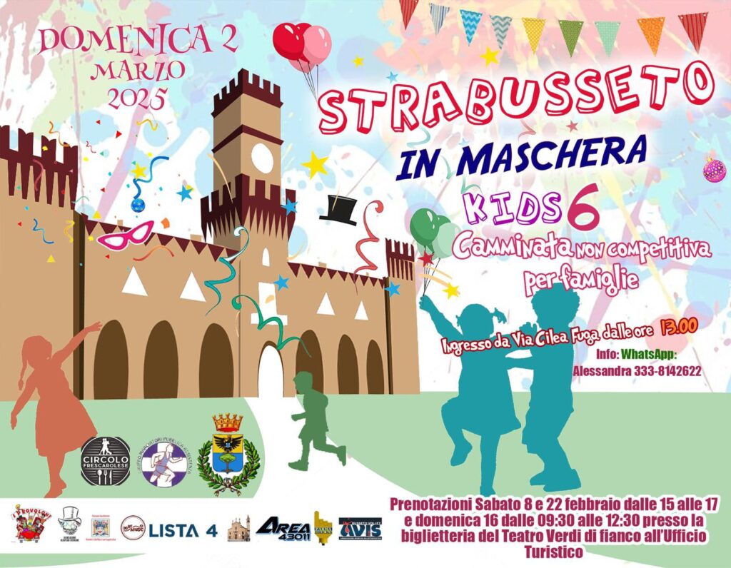 Infine, Busseto, nei luoghi verdiani, ospita la Strabusseto in Maschera Kids 6, una camminata non competitiva lungo le vie storiche del borgo, pensata per le famiglie. Mentre a Fidenza ci sarà il tradizionale Borgo Mascherato, festa di piazza per bambini. Per date e informazioni maggiori: info@castellidelducato.it