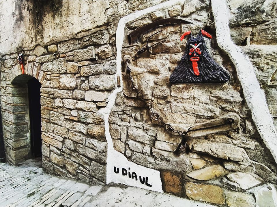 Trattengono il Diavolo in catene e lo trascinano per le vie del paese: il Diavolo salta, si rotola, cade a terra e cerca di “sedurre” chi incontra per strada, perché entri a far parte dei suoi adepti.