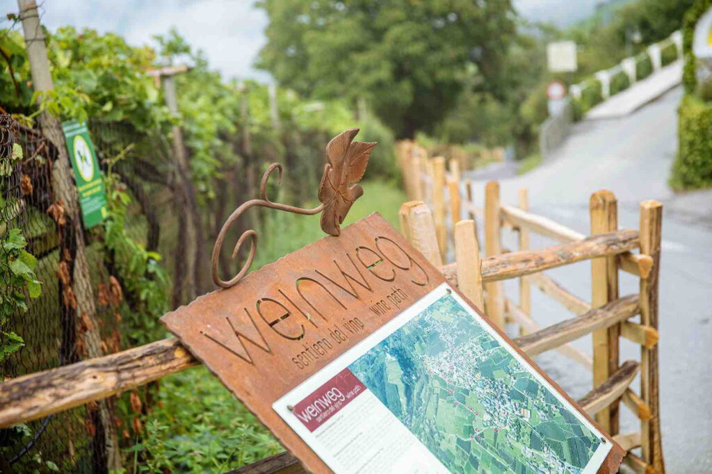 Suggestivo e interessante in ogni stagione è il sentiero dedicato proprio al vino, che parte dall’Associazione Turistica di Tirolo snodandosi tra i vigneti e le amene colline coltivate. Si tratta di un sentiero comodo e adatto a tutta la famiglia, che si snoda tra i vigneti sui pendii soleggiati sopra i tetti di Merano, invitando a sbirciare dietro le quinte della viticoltura locale.