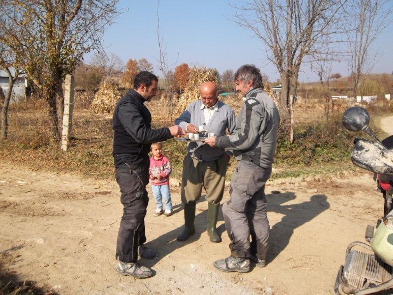 Quante vite incontrate… Come dimenticare il contadino che sentendo il rumore delle moto esce a salutarci. Così ci fermiamo e insiste per prepararci un caffè.