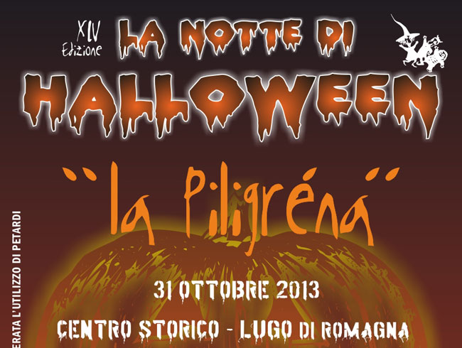 Il 31 Ottobre a Lugo di Romagna si svolgerà la grande festa per la Notte di Halloween; dalle ore 19.00 per le vie del centro storico, stands gastronomici, spettacoli, mercatini, laboratori per i piu piccoli e al termine della serata il Grande Rogo della Piligrèna.