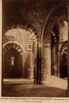 Abbazia Benedettina di Santa Maria di Moie. Veduta della navata laterale (cartolina).