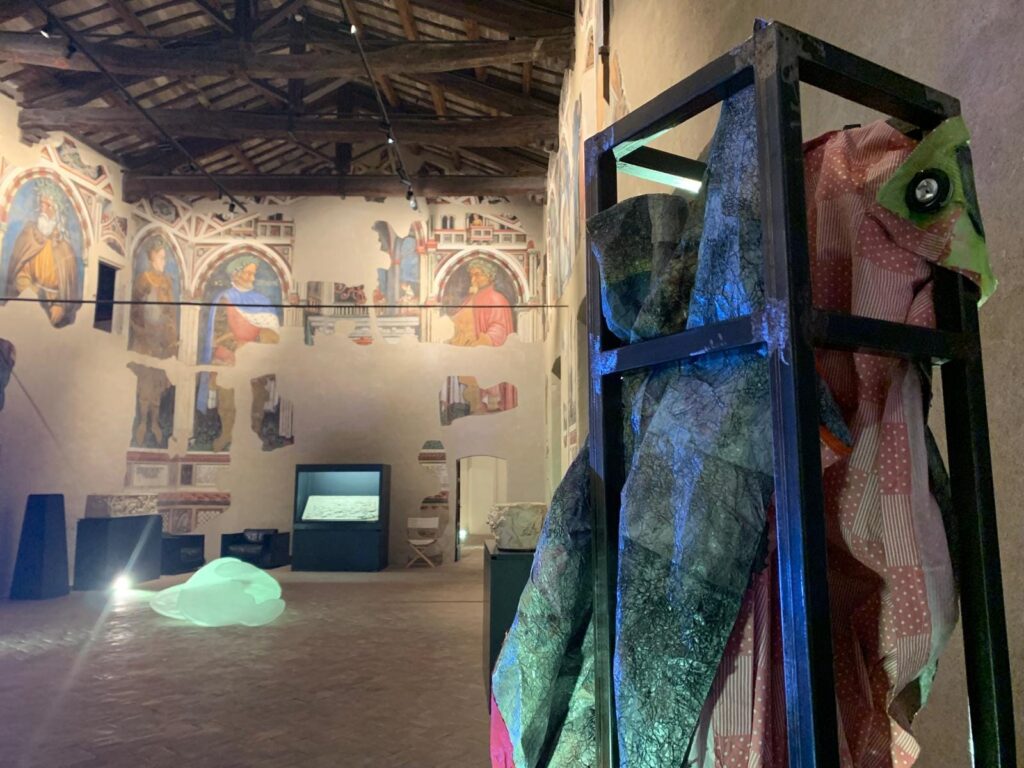 La mostra “Materia Mater”, organizzata da Coopculture in collaborazione con il Comune di Foligno, curata da Romina Guidelli e Francesca Barbi Marinetti, è articolata in più piani nel museo folignate: si sviluppa dal pozzo del piano terra fino ai grandi saloni del piano nobile, come a voler creare un tempo nuovo, ascensionale, contemporaneo. E’ uno slancio che invita alla scoperta degli scorci concessi dalla maestosa architettura del Palazzo mentre muove il pensiero verso i concetti di creazione, continuazione e memoria, caro alle artiste. “La Materia è Madre e protagonista di un attraversamento fisico e concettuale di un luogo antico, ma ancora vivo. Ogni antico mattone che resiste alla storia rinnova il ricordo della vite che lo hanno ‘toccato’”, è stato sottolineato nel corso della presentazione della mostra.
