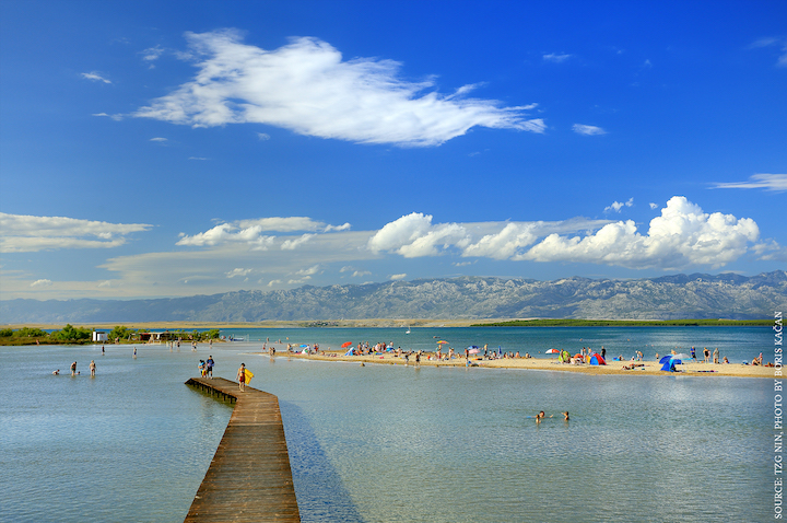 La spiaggia di Nin è conosciuta come Kraljičina Plaza, o spiaggia della Regina. Si tratta di una spiaggia di sabbia con vista sulle montagne e sembra una laguna con le sue acque poco profonde, le dune erbose e i banchi di sabbia che creano delle lingue di sabbia. Questa popolare spiaggia della Dalmazia è l’ideale per famiglie con bambini per l’acqua bassa del mare e le temperature miti. Qui si possono anche facilmente trovare Spa e trattamenti benessere, così come attività sportive come pallavolo, kite e wind surf e badminton. I numerosi bar e ristoranti lungo la spiaggia servono prelibati piatti regionali. Molte persone vengono a Nin, lontane dal traffico e dalla folla, per godersi questo paradiso incontaminato. Non c’è da stupirsi che sia anche tra le migliori destinazioni romantiche in Europa.